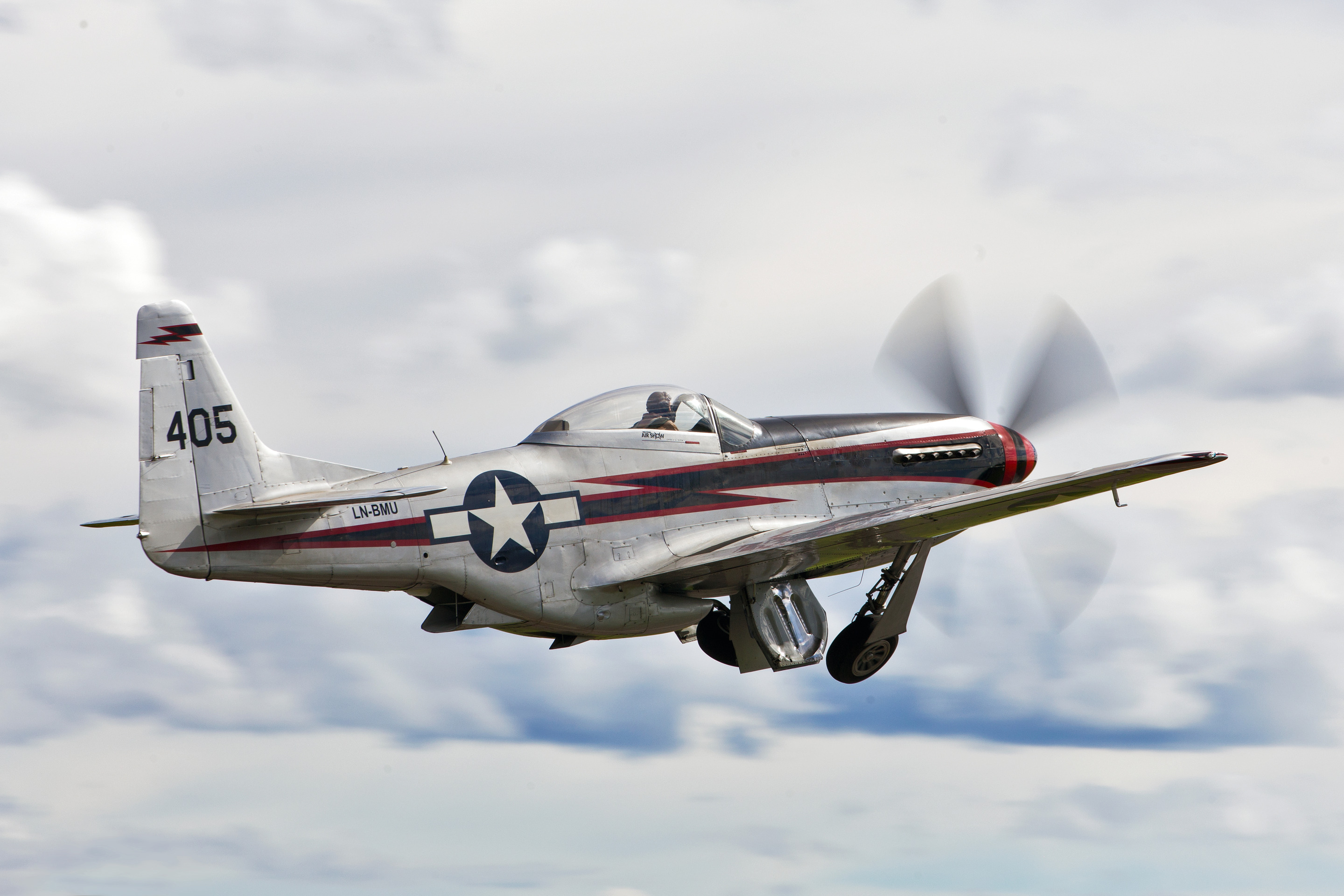 En North American P51 Mustang (ägd av Biltema) tar till skyarna med max pådrag